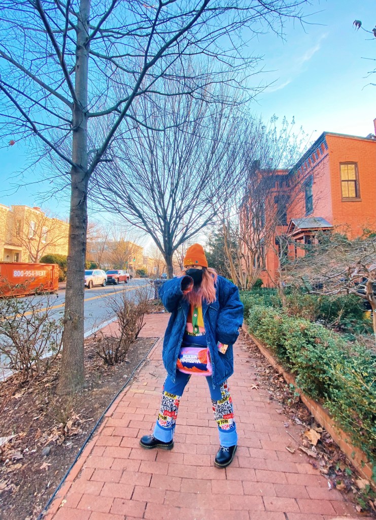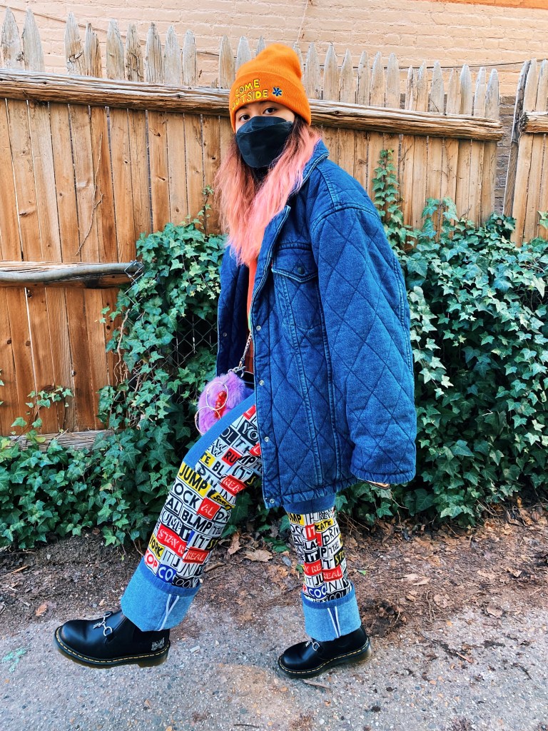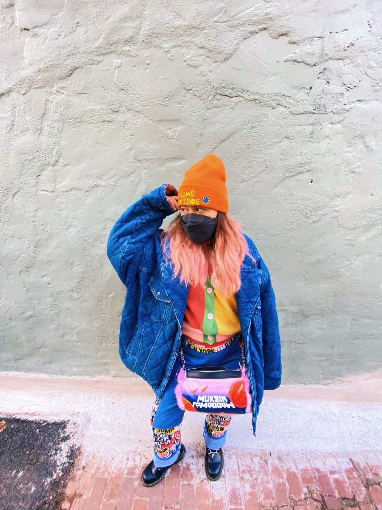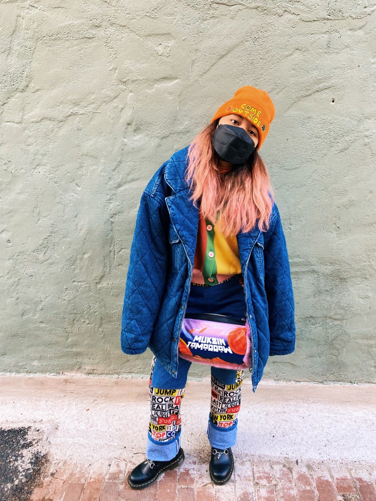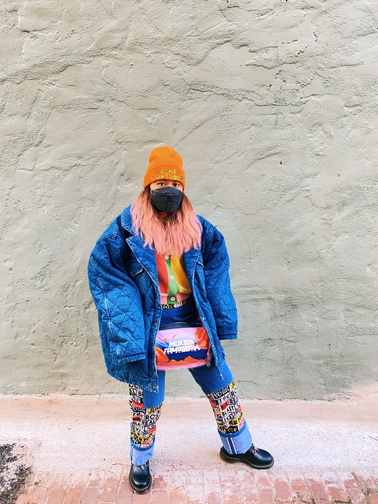 Under the oversized jacket, I wore multicolour cardigan sweater. My jacket is an L size. Depends on the silhouette and cut, I like to go bigger size than my true size.