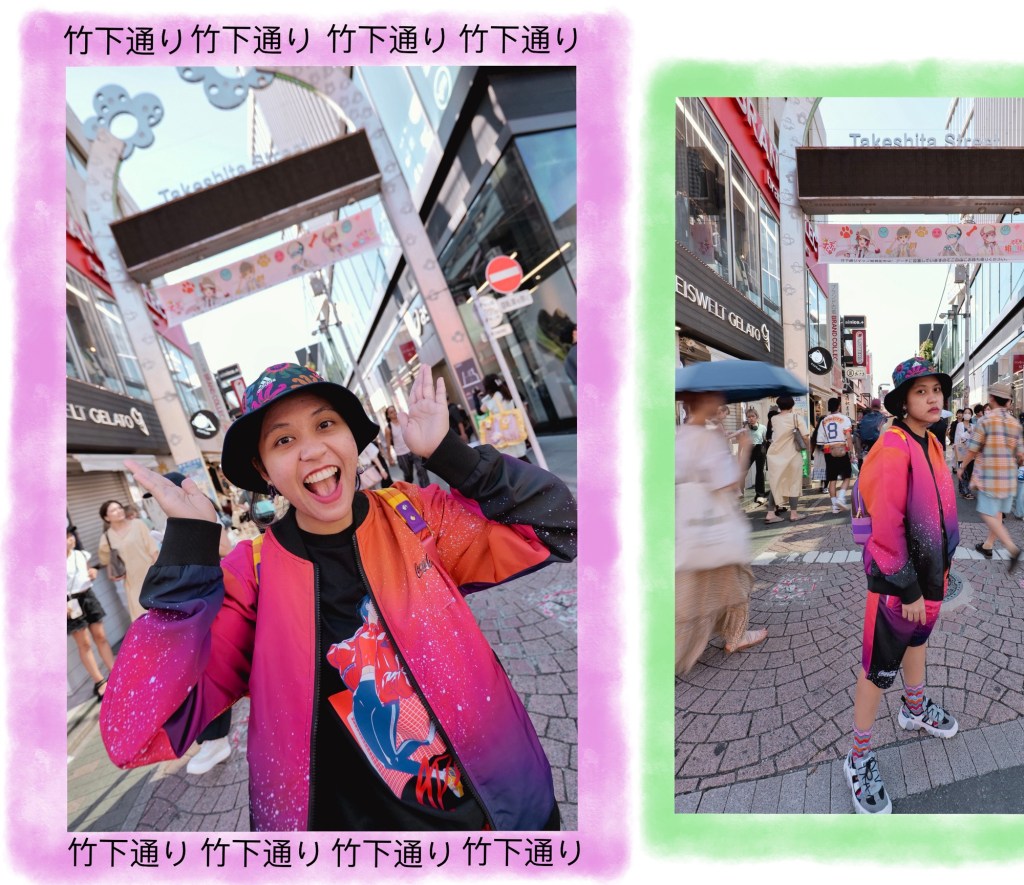 Something moved me when I knew that we (my sister, my mother, and I) were going to visit Takeshita Street that day in summer 2023. I also wanted to show my personality through the clothes I wore. And in a split second, I decided to wear something colourful with the Onitsuka Tiger sandals.